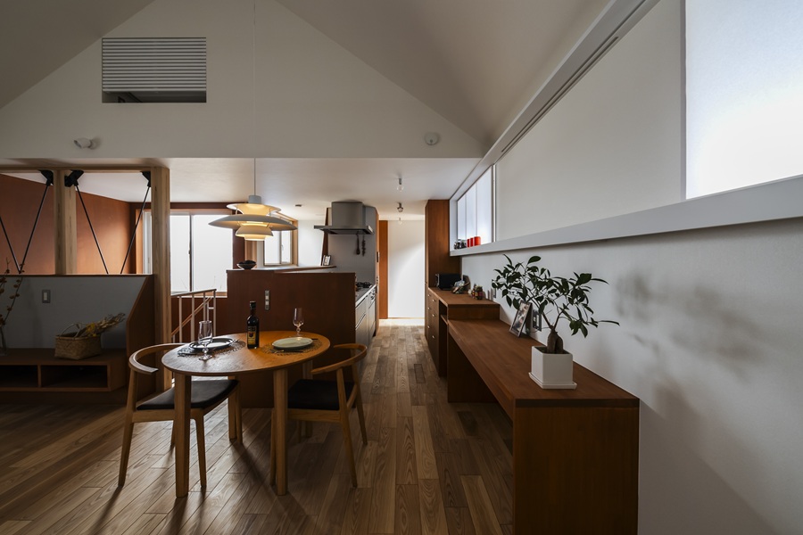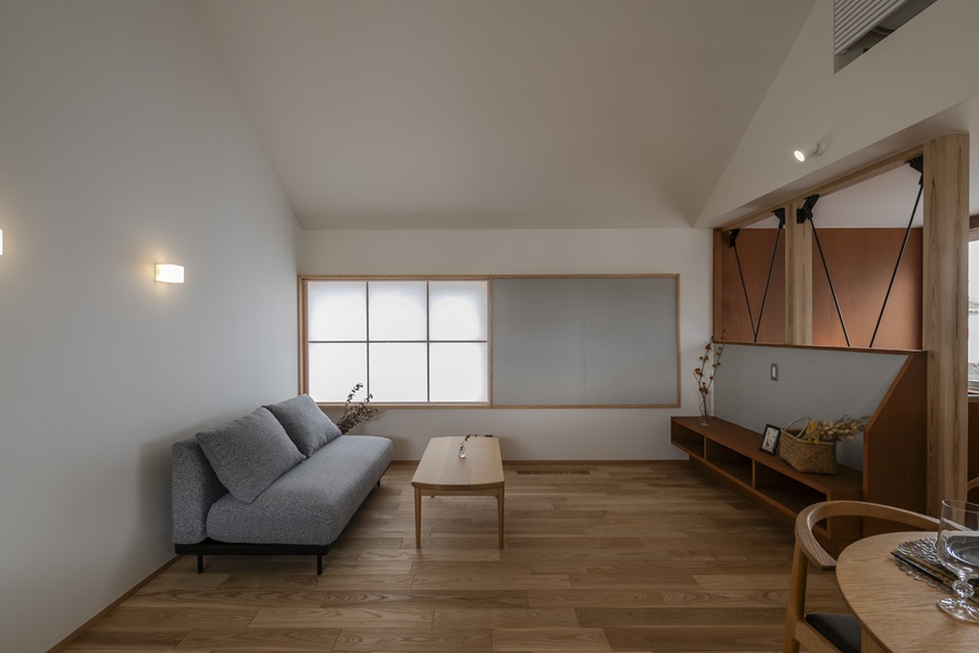 場所:東京都立川市規模:木造2階建て/94.97㎡竣工:2024年10月施工:真柄工務店耐震等級:3C値:0.2㎠/㎡UA値:0.36w/㎡Kphoto by Miho Urushido