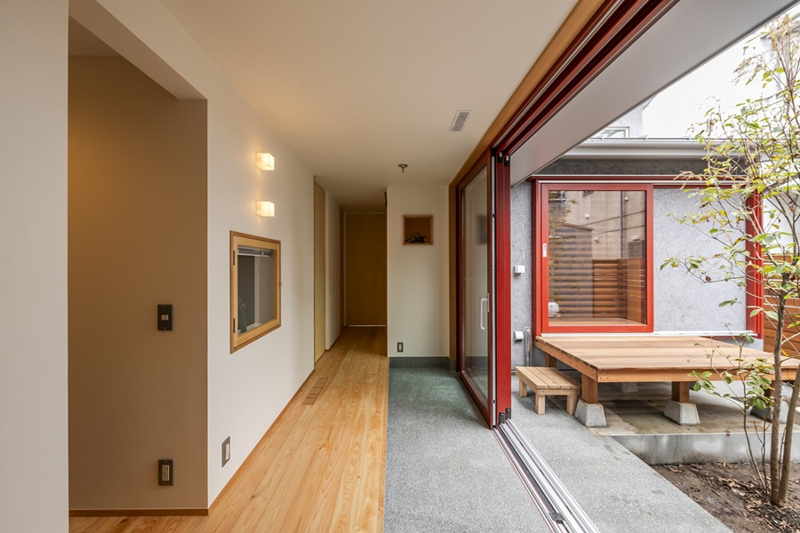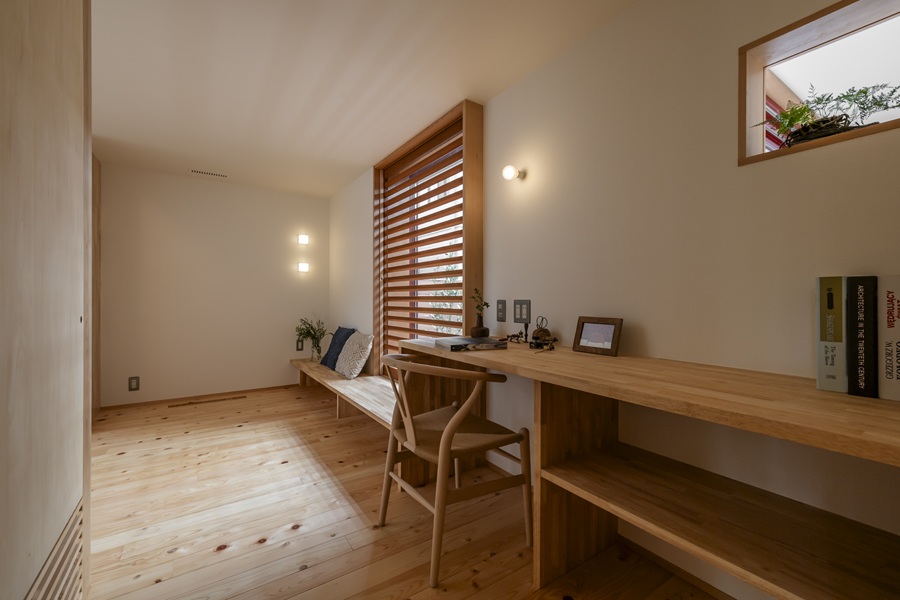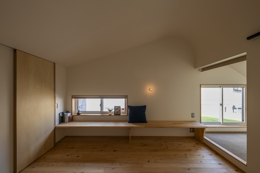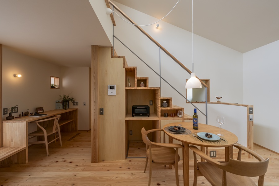 場所:東京都西東京市規模:木造2階建て/80.10㎡竣工:2023年10月施工:真柄工務店耐震等級:3C値:0.2㎠/㎡UA値:0.34w/㎡Kphoto by Miho Urushido